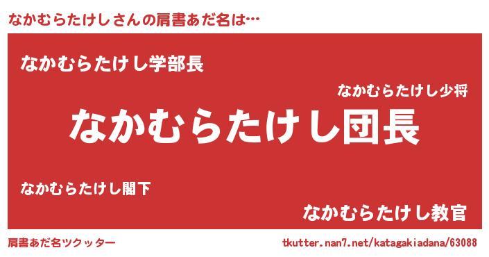 | 意味不明あだ名 | 『とにかく怪しいなかむらたけし』 |