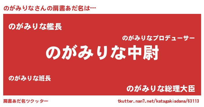 | 男性向けラノベタイトル風あだ名 | 『のがみりな~年齢イコール彼女いない歴の魔法使い~』 |