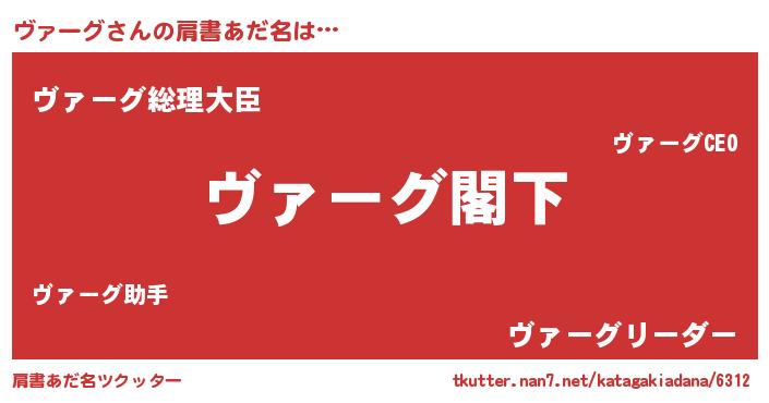 | 意味不明あだ名 | 『自称ヴァーグ』『ヴァーグフォーエバー』 |