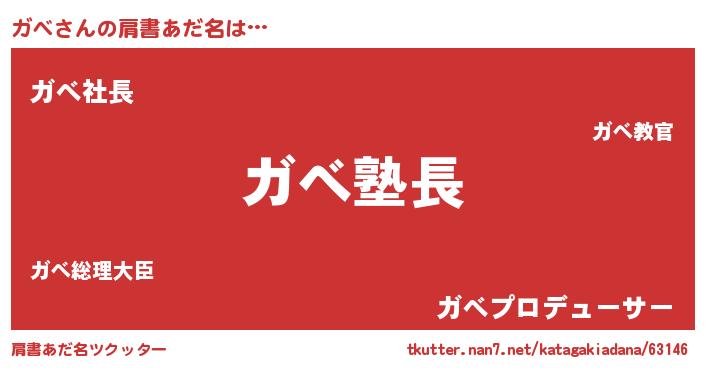| ポケモン風あだ名 | 『ヒガベ』『ガベチュウ』『ガベゴンZ』 |