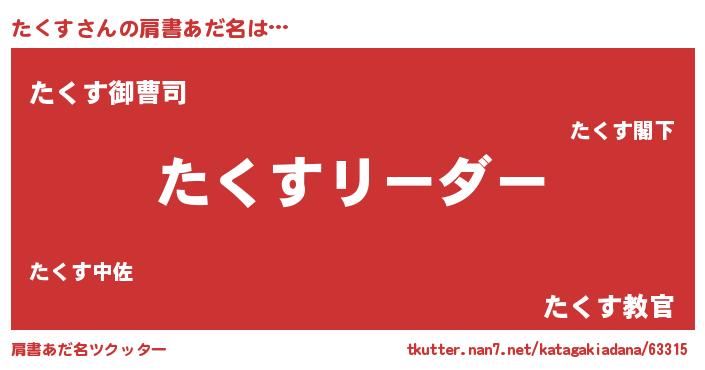 | ヘコむあだ名 | 『たくぷりん』『たくっふぃ~』 |