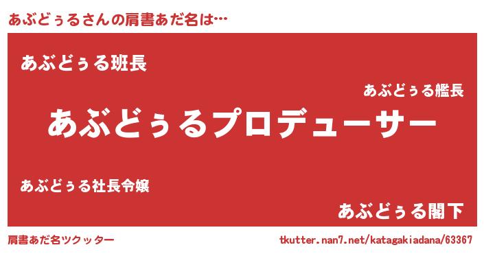 | 意味不明あだ名 | 『とにかく怪しいあぶどぅる』 |