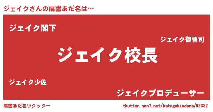 | 意味不明あだ名 | 『永久保存ジェイク』『自称ジェイク』 |