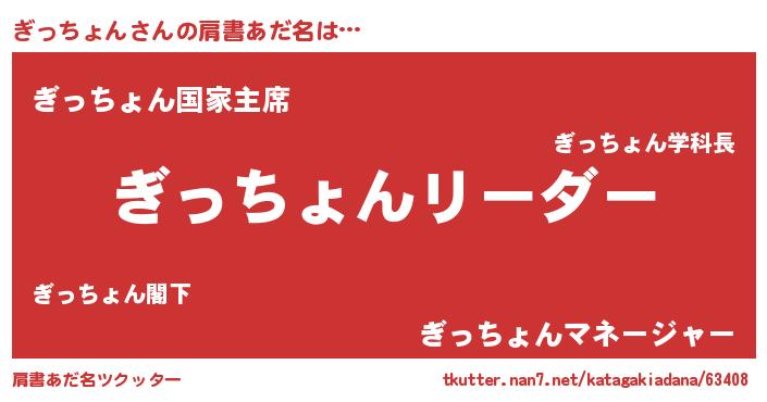 | ヒーロー風カッコイイあだ名 | 『幻影騎士ギッ』『天空の使者ぎっちょん』 |