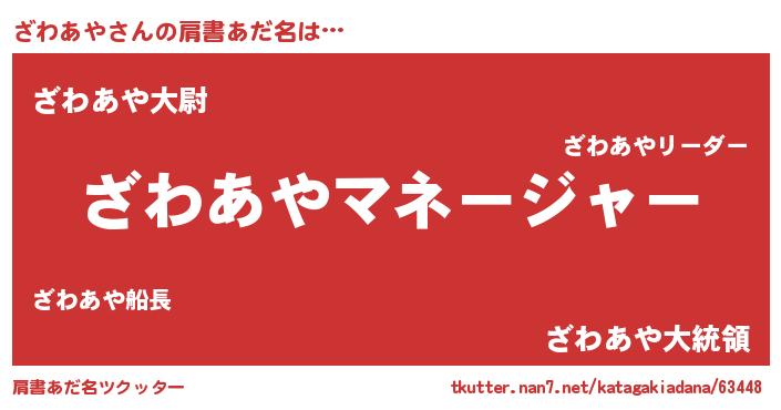| 欧米人風あだ名 | 『アンジェラ・ざわあや』 |