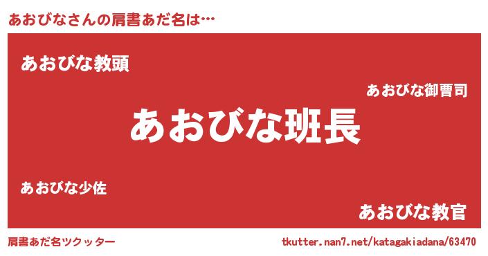 | 意味不明あだ名 | 『とにかく怪しいあおびな』 |