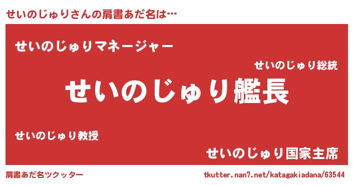 | 男性向けラノベタイトル風あだ名 | 『うちのせいのじゅりが世界を掌握している!』 |