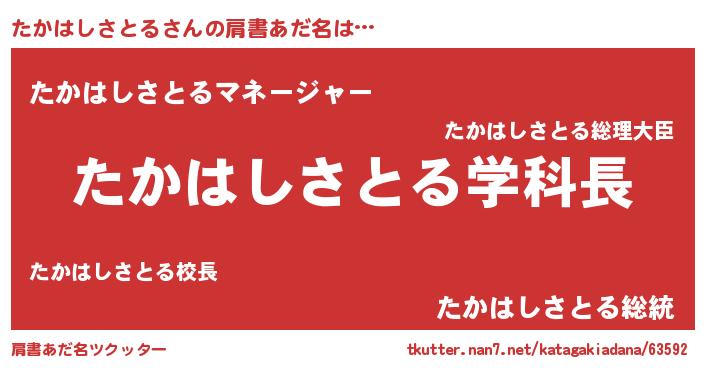 | 男性向けラノベタイトル風あだ名 | 『おまえをオタクにしてやるから、俺をたかはしさとるにしてくれ! 』 |