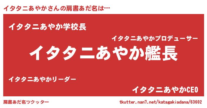 | 欧米人風あだ名 | 『イタタニあやか・ステッグマイヤー』 |