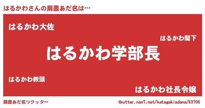 | 男性向けラノベタイトル風あだ名 | 『ノーゲーム・ノーハルカワ』 |