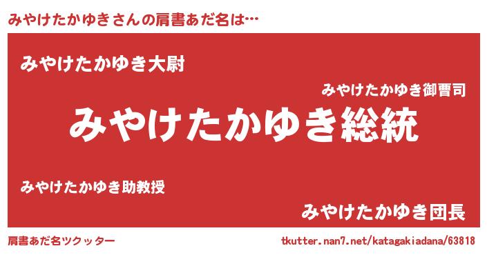 | 男性向けラノベタイトル風あだ名 | 『魔法科高校のみやけたかゆき』 |