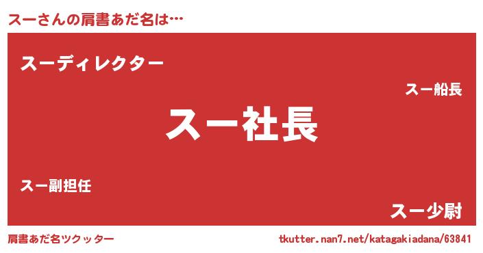 | 男性向けラノベタイトル風あだ名 | 『スーの憂鬱』『はたらくスーさま!』 |
