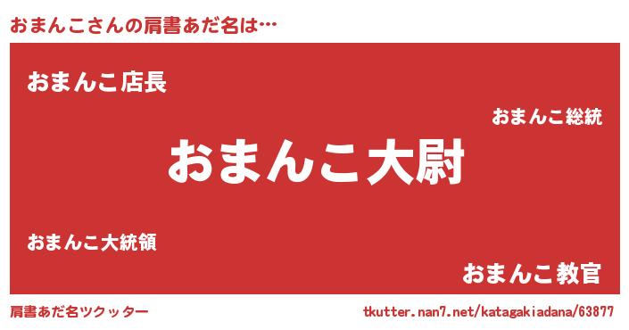 | 男性向けラノベタイトル風あだ名 | 『おまんこ~年齢イコール彼女いない歴の魔法使い~』 |