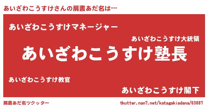 | ポケモン風あだ名 | 『ヒアイザワコウスケ』『アイゴンZ』 |