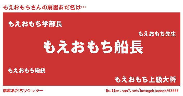 | ヒーロー風カッコイイあだ名 | 『慈愛の使者もえおもち』『天弓騎士モエ』 |