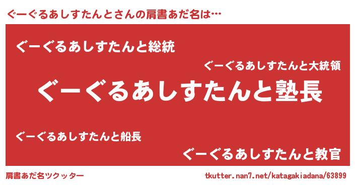 | 意味不明あだ名 | 『とにかく怪しいぐーぐるあしすたんと』 |