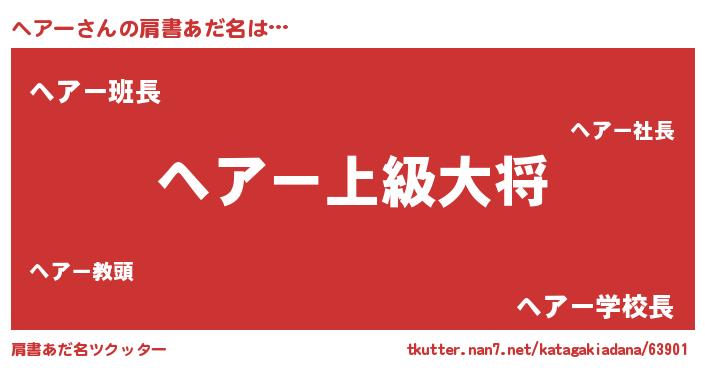 | ヒーロー風カッコイイあだ名 | 『魔戒騎士ヘア』『天空の使者ヘアー』 |