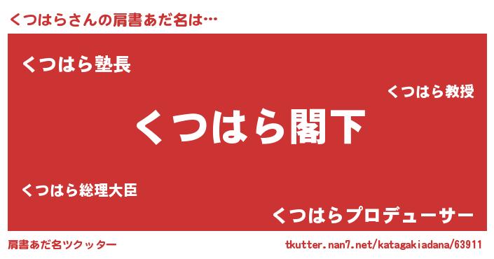 | ヘコむあだ名 | 『くつお』『酢こんぶ』『くつもー』 |