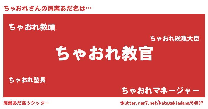 | 男性向けラノベタイトル風あだ名 | 『この素晴らしい世界にちゃおれを!』 |