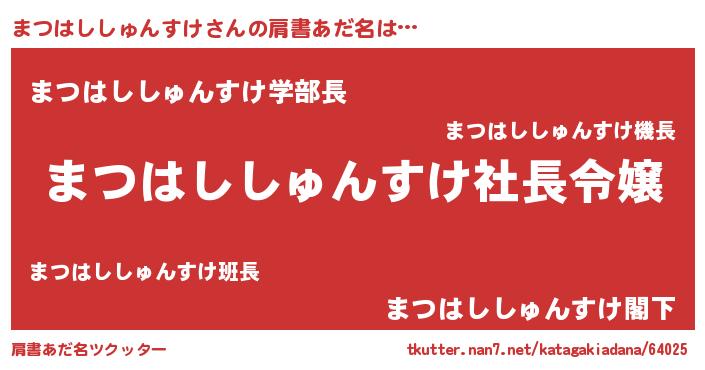 | 男性向けラノベタイトル風あだ名 | 『まつはししゅんすけの憂鬱』 |