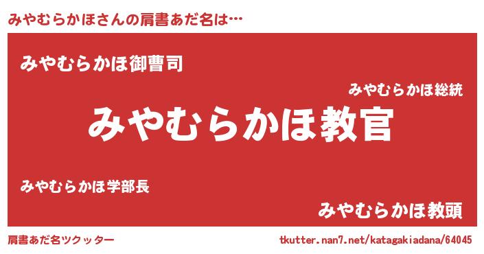 男性向けラノベタイトル風あだ名 | 『この素晴らしい世界にみやむらかほを!』 |
