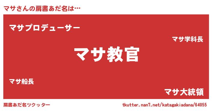 男性向けラノベタイトル風あだ名 | 『魔弾の王とマサ』『はたらくマサさま!』 |