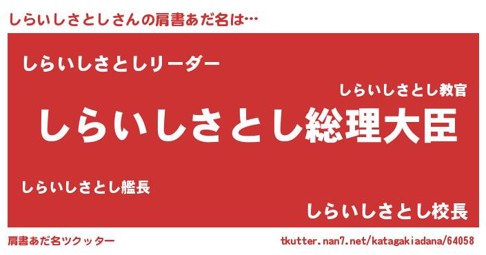 | ポケモン風あだ名 | 『シライダネ』『ヒシライシサトシ』 |