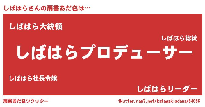 | 男性向けラノベタイトル風あだ名 | 『しばはらに滅ぼされるだけの簡単なお仕事です』 |