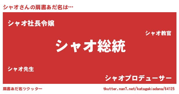 | ヒーロー風カッコイイあだ名 | 『サイバー戦士シャオ』『スーパーシャオ』 |