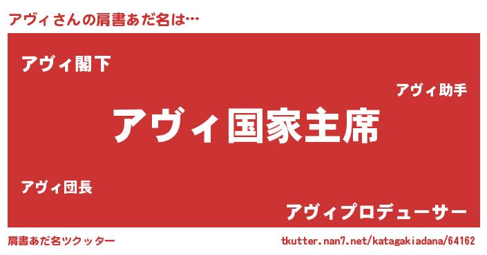 | 意味不明あだ名 | 『アヴィフォーエバー』『自称アヴィ』 |