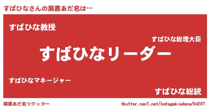 | 欧米人風あだ名 | 『ウサインすばひな』『ダニエルすばひな』 |
