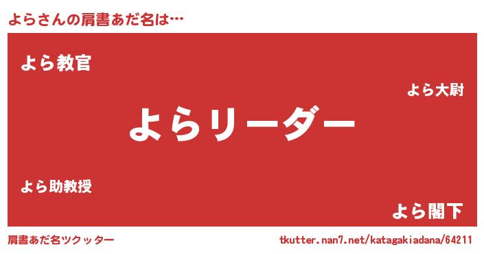 | 意味不明あだ名 | 『とにかく怪しいよら』『自称よら』 |