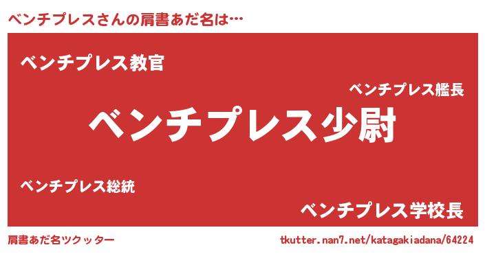 | 男性向けラノベタイトル風あだ名 | 『ベンチプレススレイヤー』 |