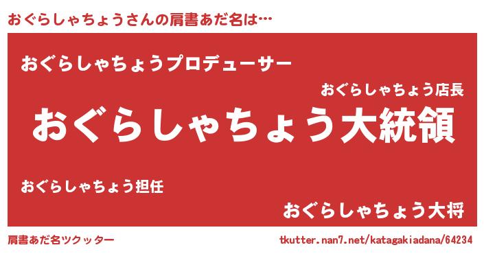 | 欧米人風あだ名 | 『おぐらしゃちょうクリステル』 |