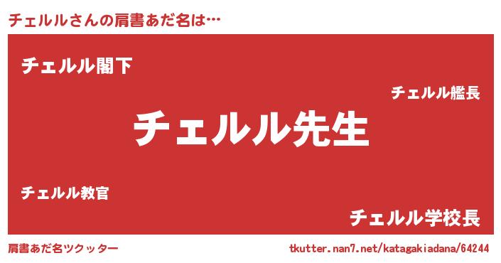 | 意味不明あだ名 | 『永久保存チェルル』『自称チェルル』 |