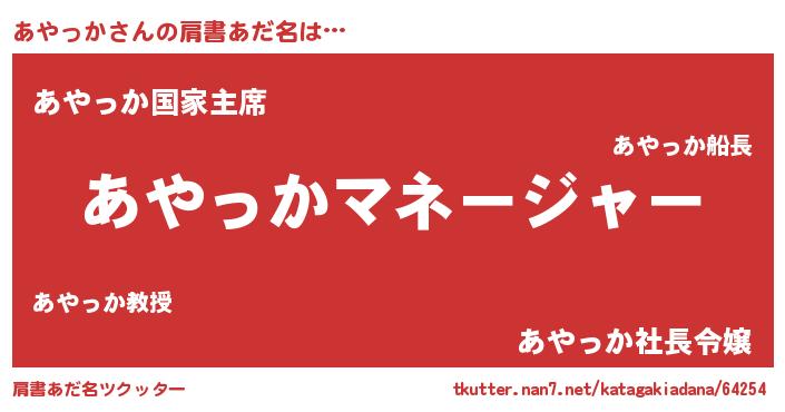 | 男性向けラノベタイトル風あだ名 | 『あやっかに滅ぼされるだけの簡単なお仕事です』 |