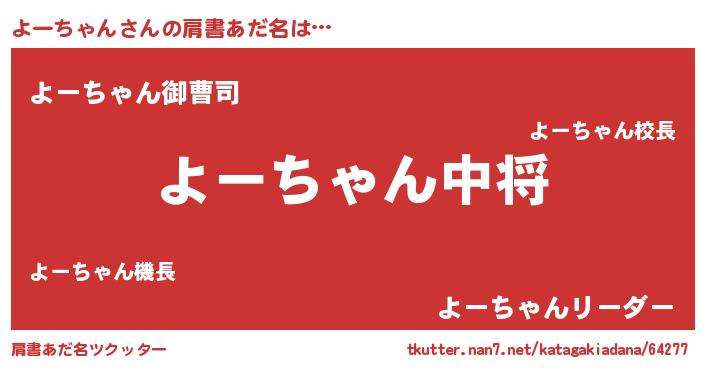 | 男性向けラノベタイトル風あだ名 | 『転生したらよーちゃんだった件』 |