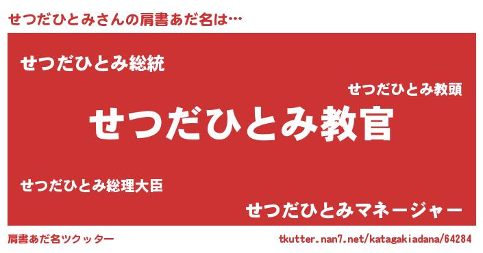 | 男性向けラノベタイトル風あだ名 | 『この素晴らしい世界にせつだひとみを!』 |