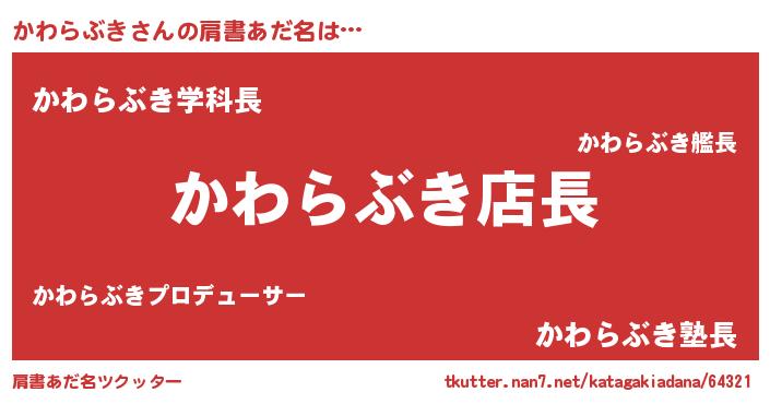 | ヒーロー風カッコイイあだ名 | 『スーパーカワラブキ』『幻影騎士カワ』 |