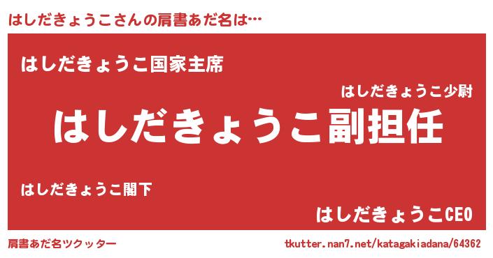 | 胡散臭い通販商品みたいなあだ名 | 『来世でも幸せになれる水素水…その名も「はしだきょうこ」』 |