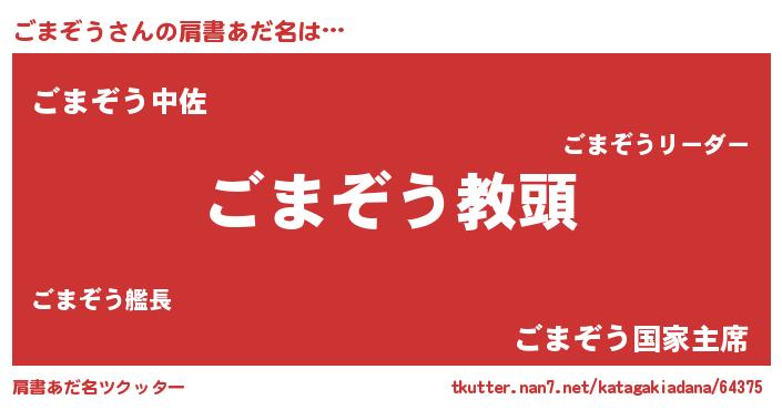 | 男性向けラノベタイトル風あだ名 | 『ごまぞうという概念が存在しない退屈な世界 』 |