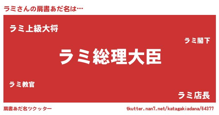 | ヘコむあだ名 | 『豆乳』『ラミにー』『ラミっ子』 |