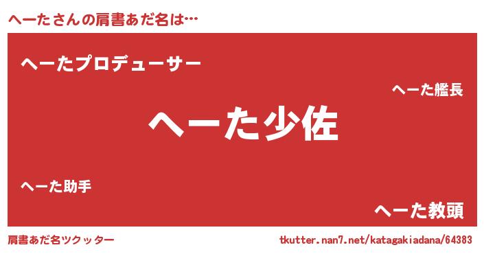 | ヒーロー風カッコイイあだ名 | 『ネオヘータ』『友情の使者へーた』 |