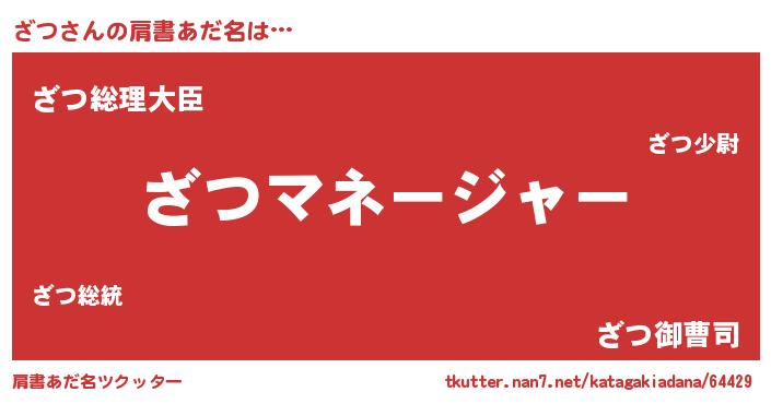 | ファンタジー風あだ名 | 『エターナルザツー』『ザツフェル』 |