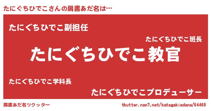 | 男性向けラノベタイトル風あだ名 | 『この素晴らしい世界にたにぐちひでこを!』 |