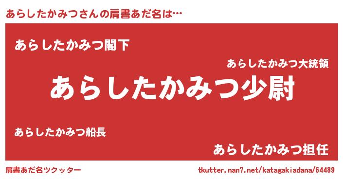 | ヒーロー風カッコイイあだ名 | 『サイバー戦士アラシタカミツ』 |