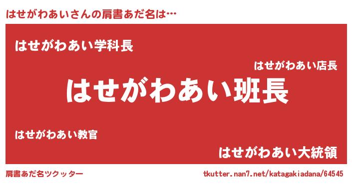 | 意味不明あだ名 | 『とにかく怪しいはせがわあい』 |
