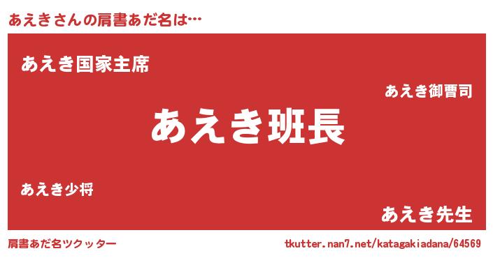 | 男性向けラノベタイトル風あだ名 | 『あえきの嫁は女の子じゃないと思った?』 |