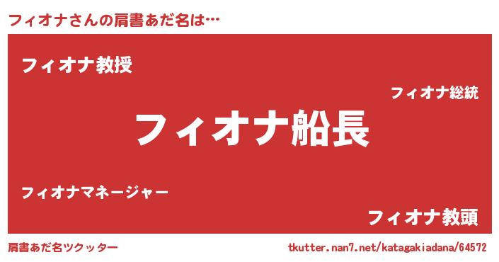 男性向けラノベタイトル風あだ名 | 『うちのフィオナが世界を掌握している!』 |
