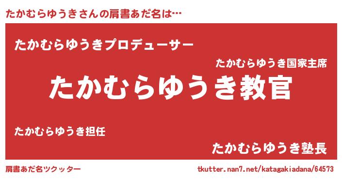 | 男性向けラノベタイトル風あだ名 | 『この素晴らしい世界にたかむらゆうきを!』 |